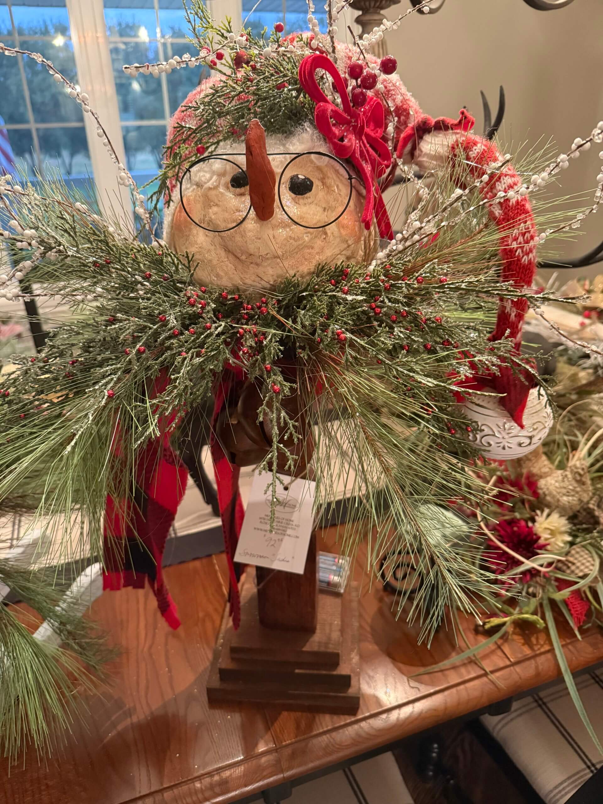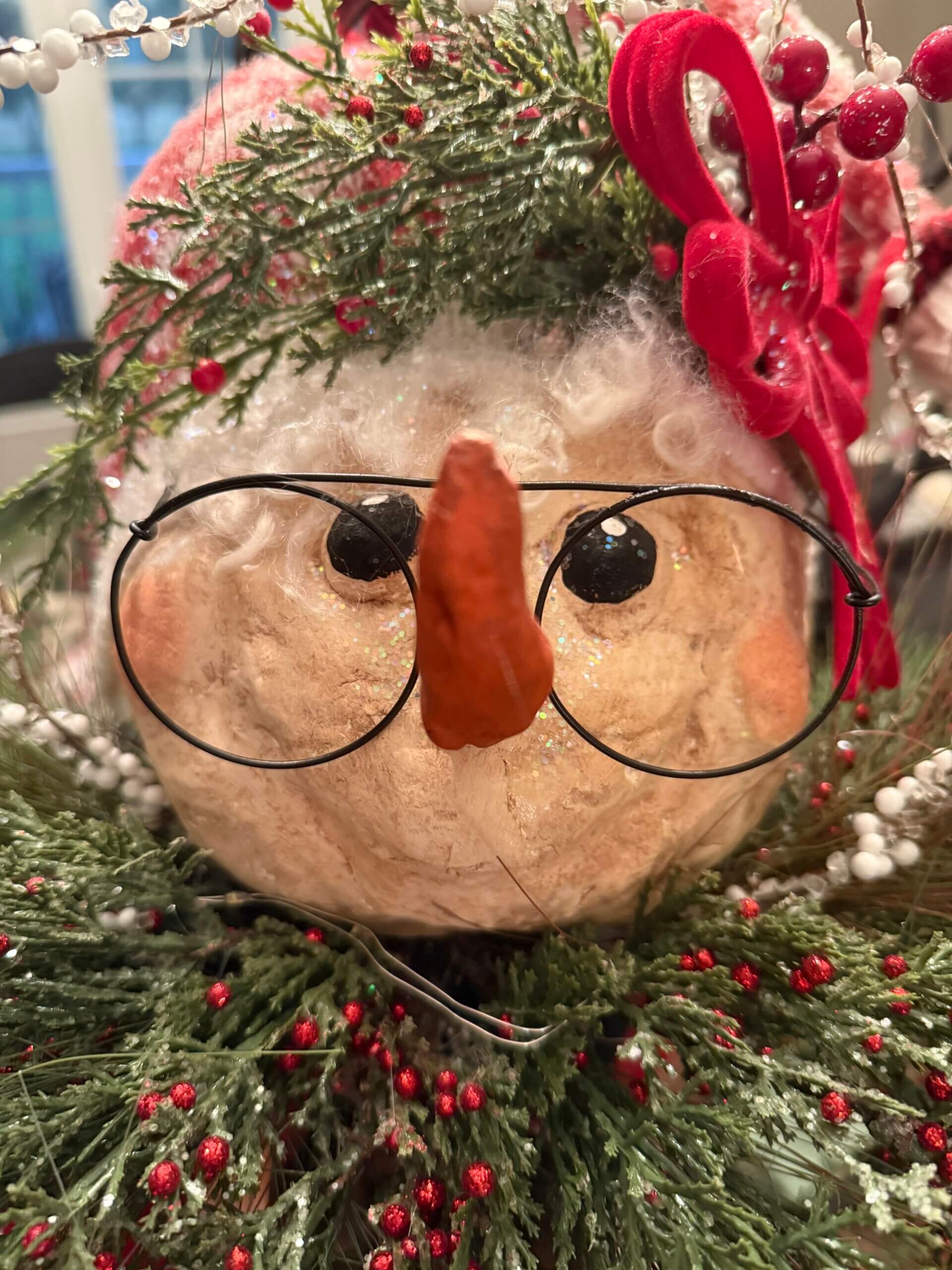 I know I told you about the snowman that I’ve been creating from clay and antique table legs, but I don’t think you saw the new addition to their heads.