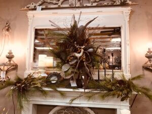 This mantle can take you right into the Christmas Season with just a few added elements. And then if you subtract your Christmas items, and add some all season products–you’ll be able to keep the whole mantle through the winter months. September through early March will work for this mantle.