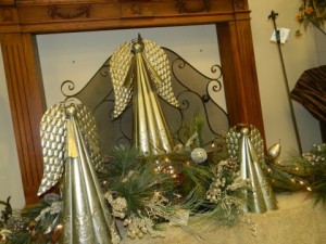 Now you’re going to add a garland with lots of sparkle and bling—Every angel has to have a little bling going on. Ta-Dah!!!! Something heavenly is going on on the fireplace hearth.
