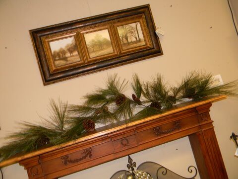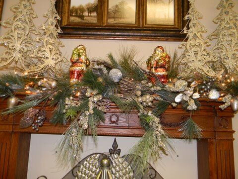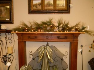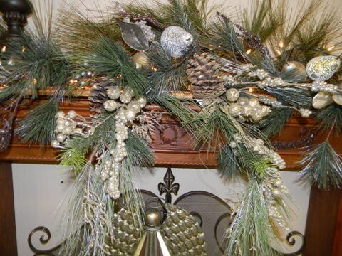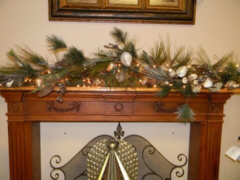 We’re going to use the same principal as the mantle. There will be one key element though that is different. You’ll see what it is and see how much just this little touch will be a big “wow” factor for your mantle. Put the garland (remember nice garland) on the hearth. Just lay it on there and hook it with some plastic hooks you can find it at any hardware or big box store. They come with several in a package. Or you can tape the garland on (if you’re not worried about taking the paint off.)