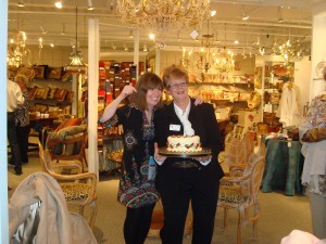 We also brought in some additional Mary Carol (of Nell Hills) pieces that we are excited about. While we were there, we were able to join other buyers in singing Happy Birthday to her. (She is the one on the left pointing to her cake).