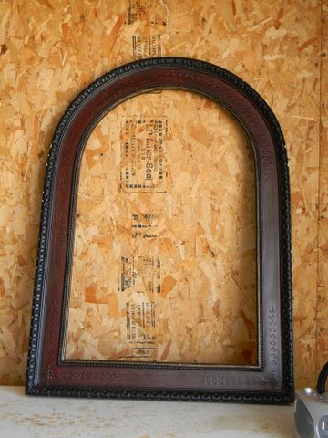First of all, I took a picture frame. This one was really big. Some of you may remember that it had a big, beautiful cross framed and in the center of it. The frame had some issues so I called the company and they sent me a new frame and picture. So I disposed of the frame and thought “Wait a minute. I can do something with this.” So I dug it out and waited for the perfect project.