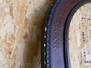 I loved the detail on this frame and knew that if I distressed it, it would be really neat. So I went to work and painted it a color called “white chocolate”.
