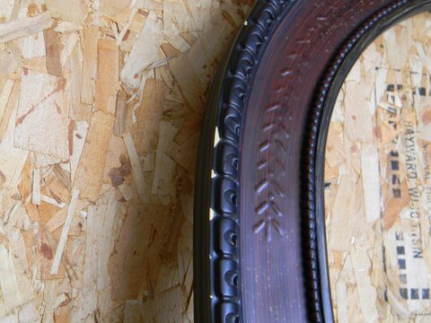 I then distressed it, oh so slightly. I decided not to put a darker glaze over it (which would have brought out the intricate details of the frame) but it would not have looked as good with my woodwork as it does now.