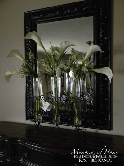 This type of vase has been very popular.  So easy to do it yourself and have you look like a designer.  You could use fresh flowers or the permanent kind.  The vase is $63.95 and each floral bunch is $24.95.  Some of you who have already purchased the vase may want this idea for your spring floral for this vase.