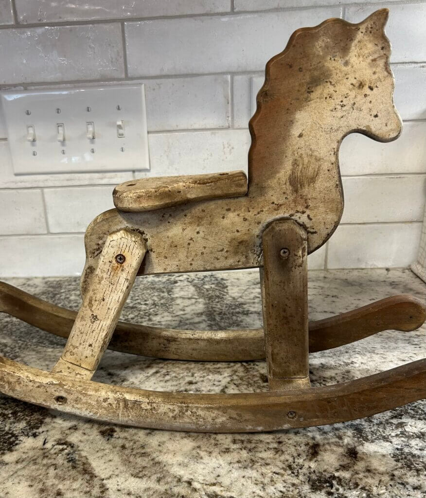 And speaking of me working as hard as I can, my husband is working, even harder, contributing more to the business than ever before. My daughter, bought this adorable rocking horse at an antique store back east. It may not be an antique, but it is just precious. So my husband reproduced it and I think he did an excellent job and you can bet I am using it in my designs for the upcoming Christmas season.