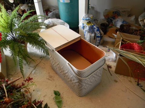 I love to go to a garage sale when the husband is running things. He just wants to get rid of this “junk.” And to think that his wife only yesterday called them her treasures. Well, I am sure this basket must have been one Aunt Martha used for many a chicken dinner picnic. I’d say it was worth $.50, wouldn’t you? Her husband wanted me to take it for nothing, but I begged him to take $.50 for it. He finally took my money and I told him he drove a hard bargain.