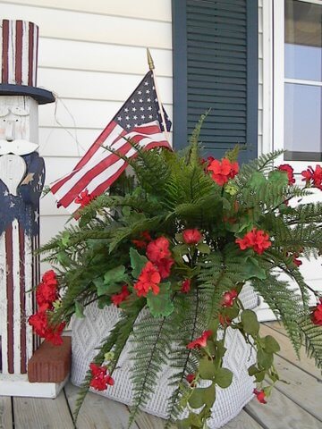 I then put the finishing touches on the project. I love to see the American flag on my porch all summer long. After adding the flag, I moved it to it’s new summer home. I can’t wait for the picnics and fun we’ll have as a family all summer long. Hopefully, I’m creating summer memories for my grandchildren they’ll tell to their children about their grandmother’s house during the summer.