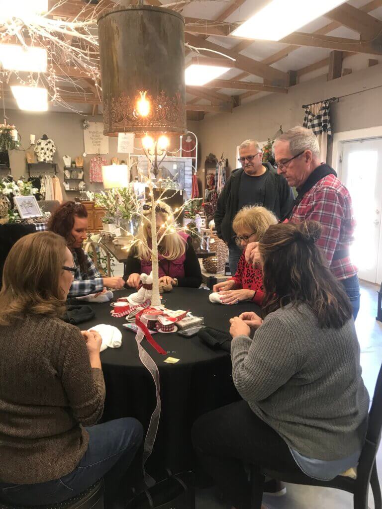 Take part in the “MAKE IT AND TAKE IT” if you wish,workshop in the afternoon. On the hour of 1,2,and 3. Just a fun time learn a new skill. It will be a “no shame zone.” Just have fun. Bow making and a little découpage for you to have fun with.