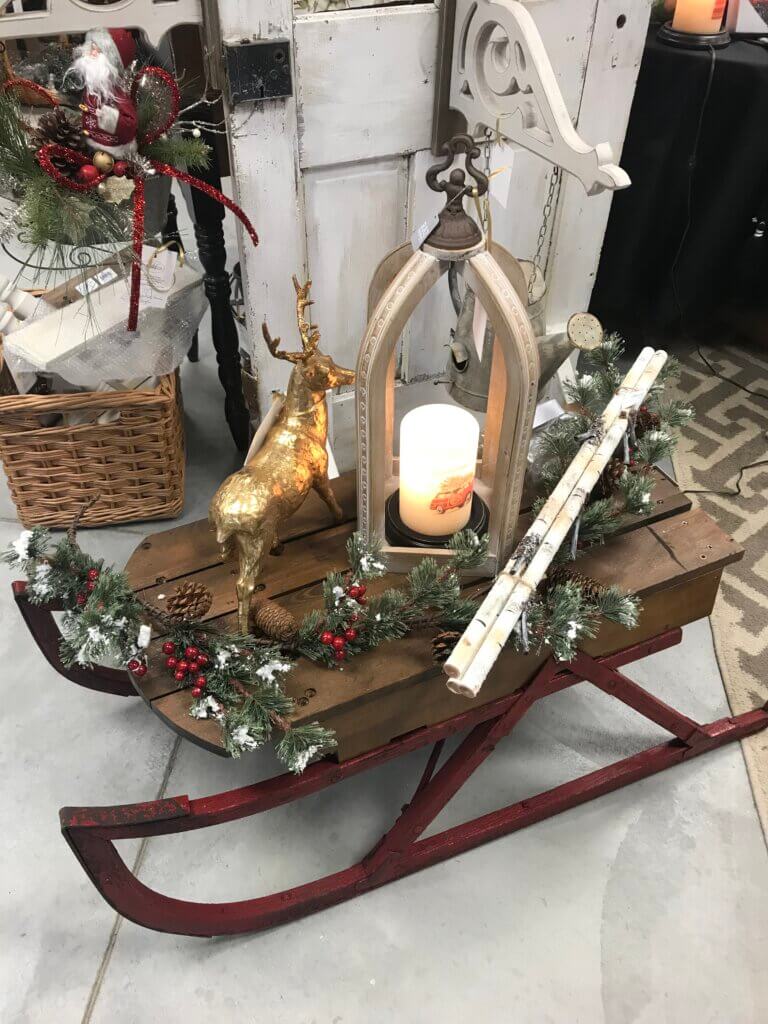 I did want to bring you up to date on the sled that my husband finished and built for the shop. (And of course, it is for sale.) I remember the day I brought the antique sled runners home. He looked at them and said, “What are you going to do with those?” And of course, I smiled, and said, “No, dear, what are YOU going to do with these?”