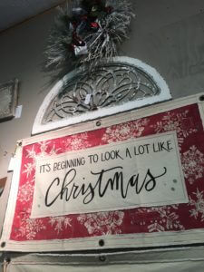 My grandson built a wooden Christmas tree for me and I decorated it. If it doesn’t sell in Arkansas, you’ll see it here at the shop. And the fun part of it is my husband got to work with him building memories together.