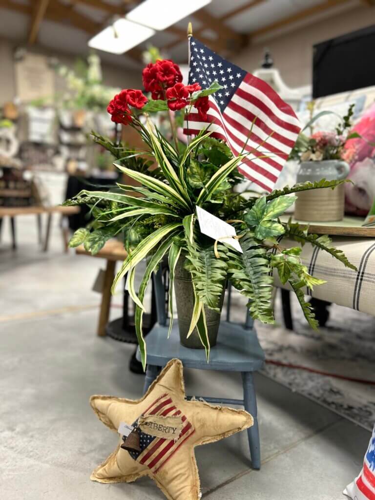 I still have a few patriotic products left, and they would look great on your front porch or —-IN your house if you don’t dare walk out in the heat.