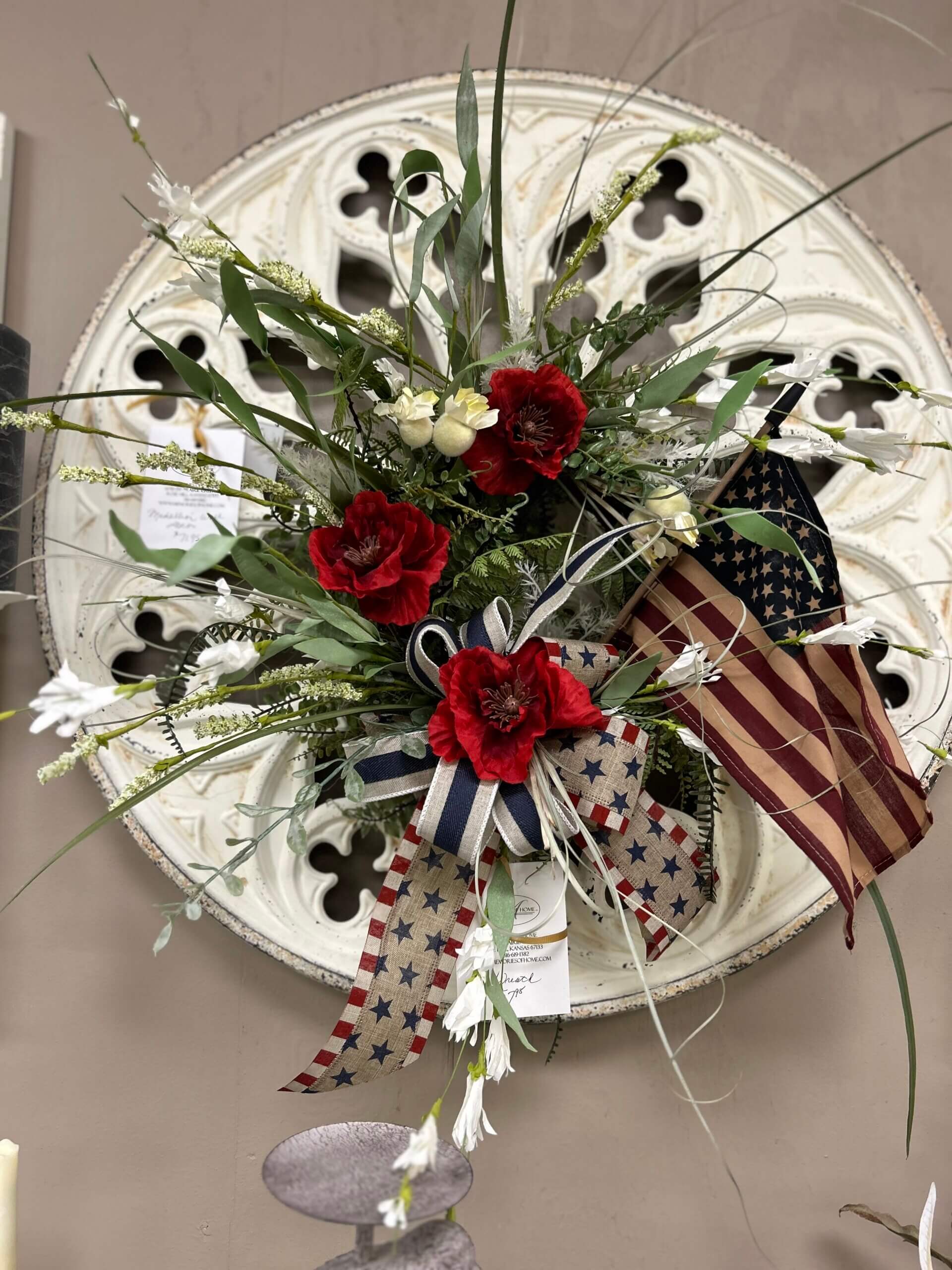 I still have a few patriotic products left, and they would look great on your front porch or —-IN your house if you don’t dare walk out in the heat.