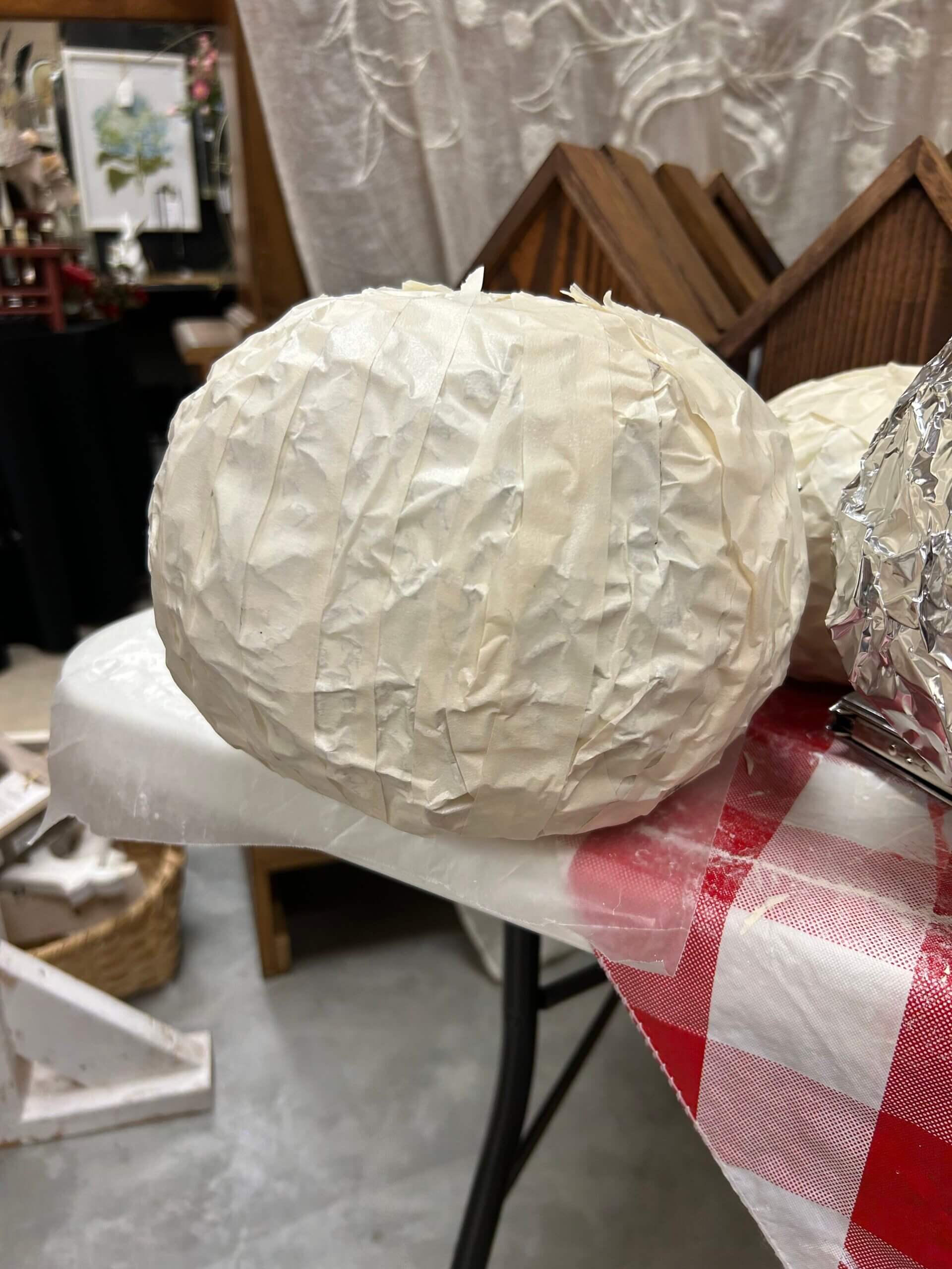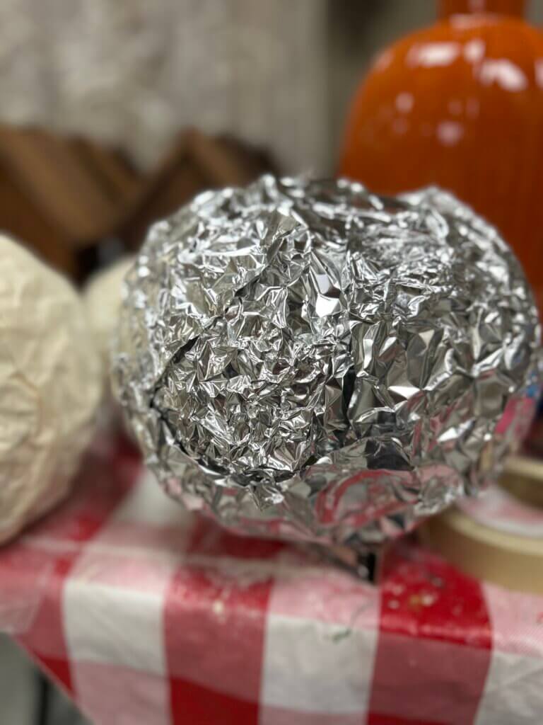 I’m still receiving autumn shipments, and definitely working on Christmas as well. Just as a little tease, I want you to remember the picture of this big ball of aluminum foil and masking tape and what it will turn into by next week.