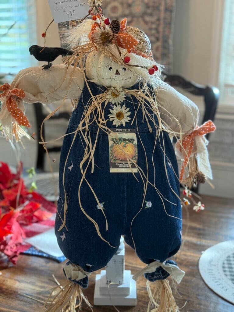 So this morning, as I’m getting ready to ship my scarecrow that I showed you last week halfway across the country, I’d say somebody thinks it’s autumn and can’t wait to get this little doll baby in their autumn decor.